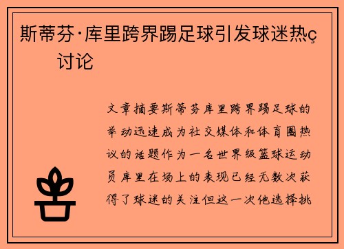 斯蒂芬·库里跨界踢足球引发球迷热烈讨论